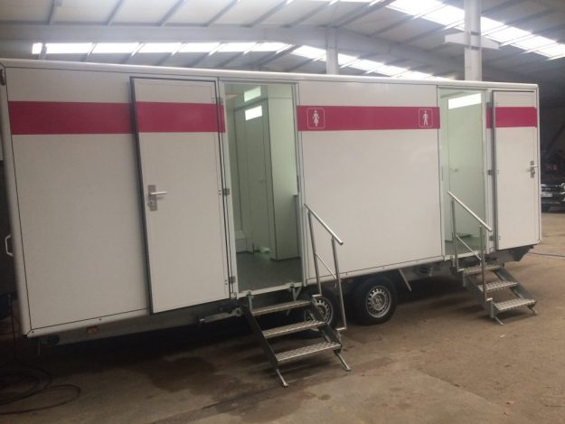 Neu in der Flotte überzeugt dieser Toilettenwagen besonders durch seine attraktive Optik und äußerst effiziente Raumnutzung. Mit insgesamt 4 Toiletten und 4 Urinalen eignet sich dieser Toilettenwagen auch für mittelgroße Veranstaltungen.